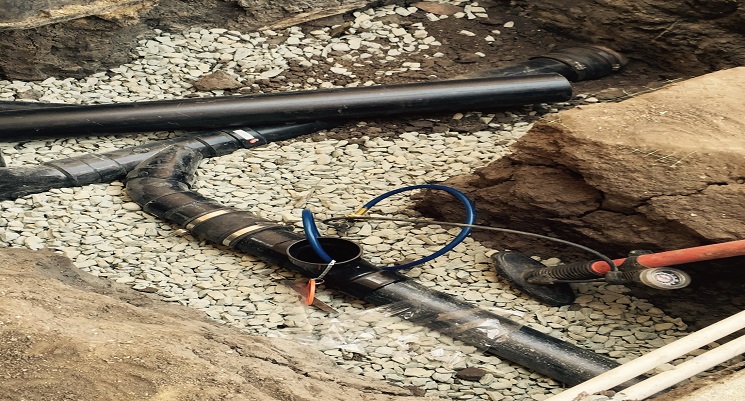 We can dig a small hole by the street and pull in the new HDPE water line from inside your basement. We use joint-free fittings that are installed with an electro-fusion machine.